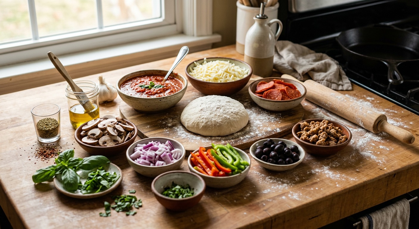 Creating an exceptional homemade pizza starts with quality ingredients. Here's everything you'll need: